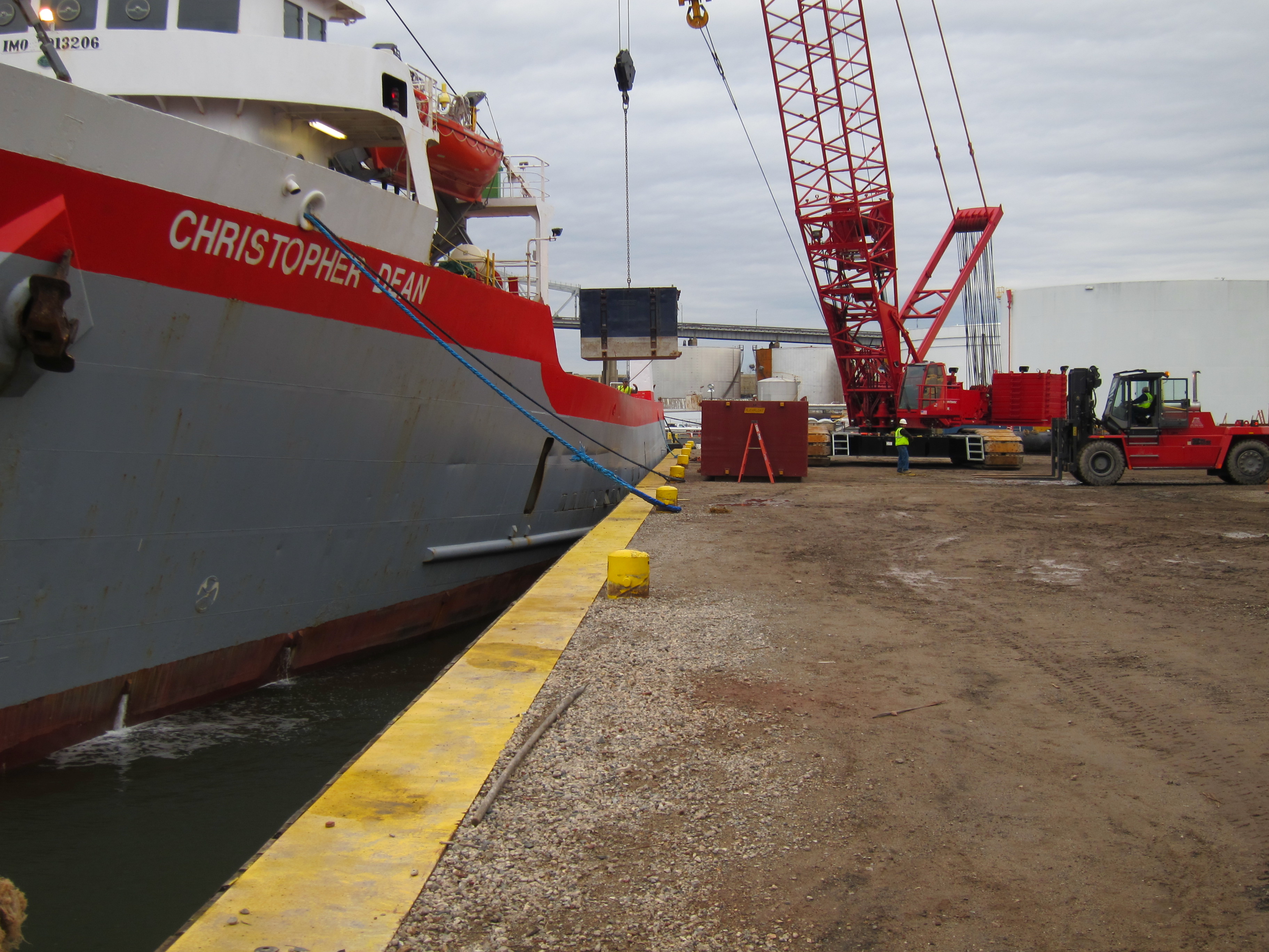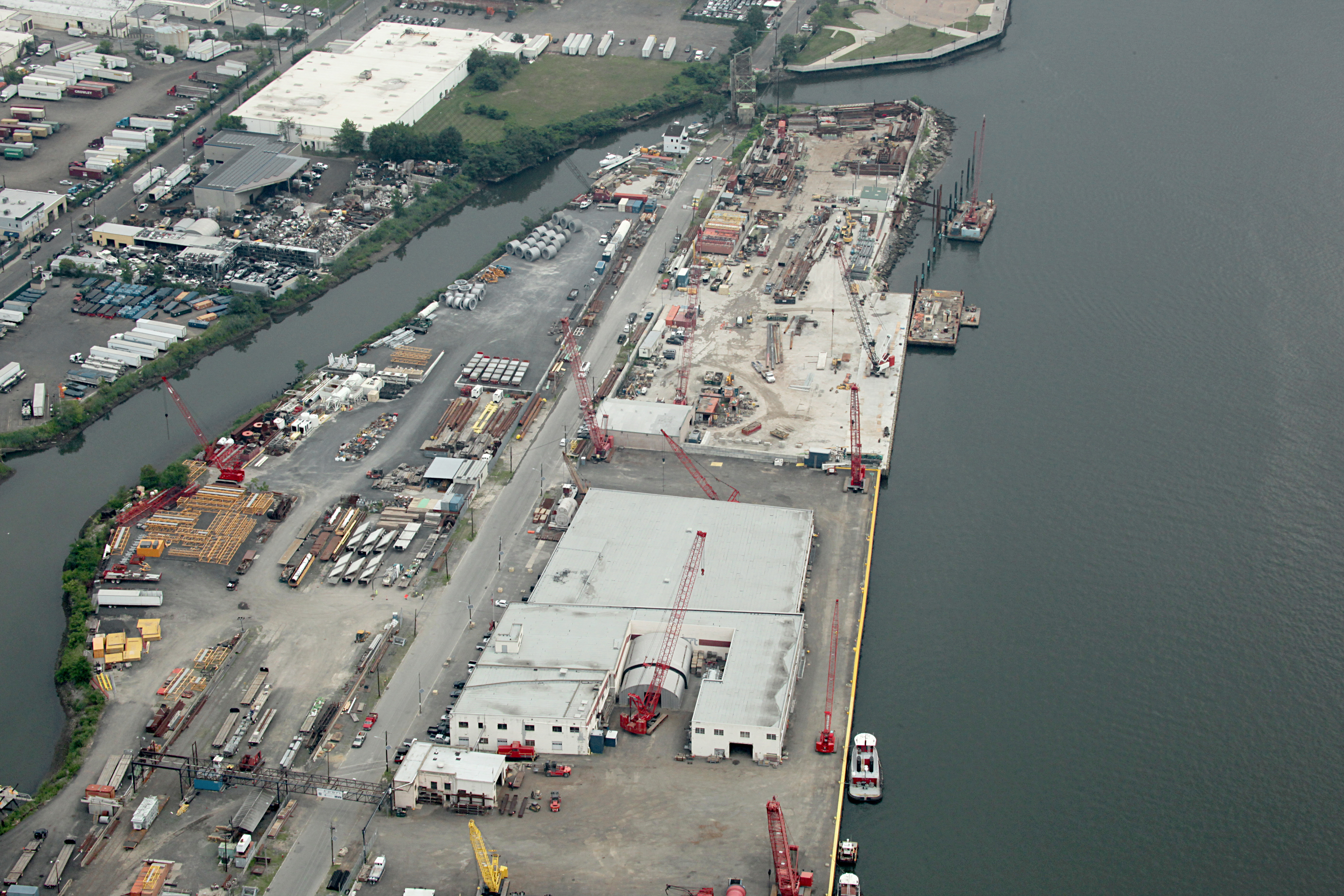 Construction & Marine Equipment Co., Inc. (CME) is a full service marine terminal located in Elizabeth, New Jersey. Our on-site facility features include 13 acres of open land, 90,000 sq. ft. of warehouse, 735 ft. of deep draft heavy load bearing bulkhead, 2,000 ft. of rail tracks/spurs (including dockside track), in house crane capacities up to 440 ton, forklifts to 55,000 lbs., GE switcher locomotive, 1,400 HP tugboat, welding machines, air compressors, aerial lifts, work barges, material handlers, and other various support equipment.