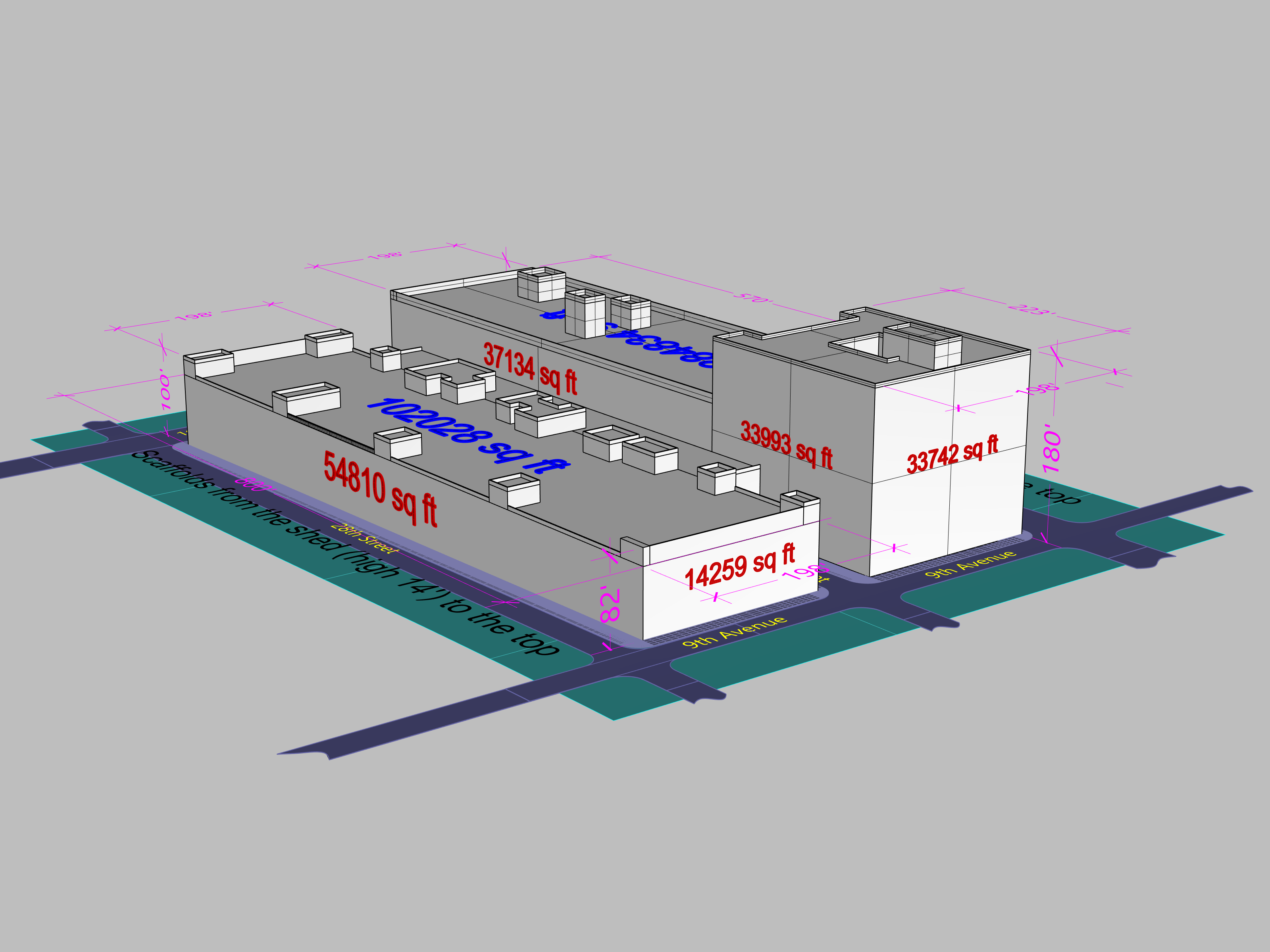 SIDEWALK SHED, PIPE SCAFFOLDS, ROOF PROTECTION, NEEDLE BEAMS, ETC.